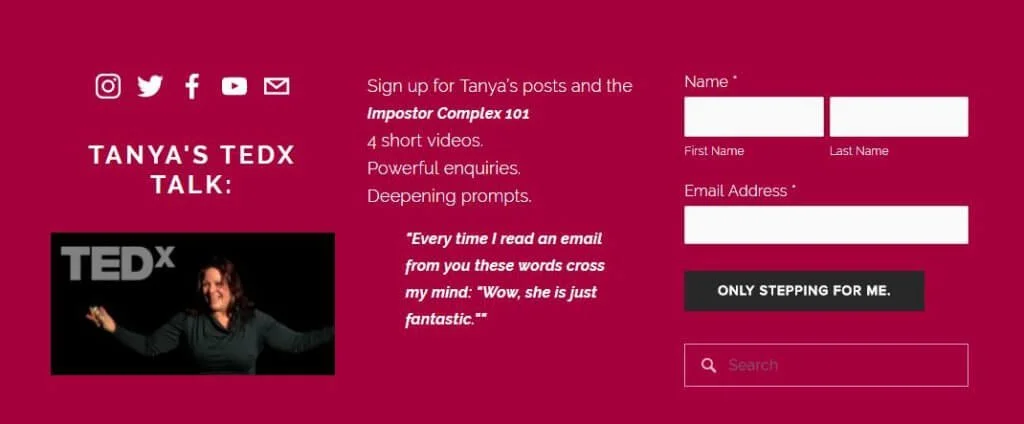 As I run through the areas of your website where you can connect with people directly (and invite them to subscribe), I’m sharing lots of great examples by other inspirational businesswomen.